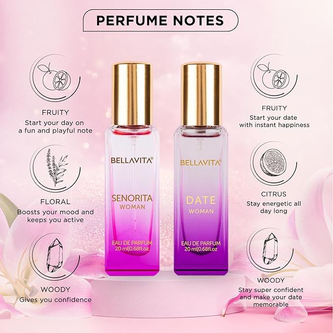 Bella Vita Luxury Date & Senorita Women Long Lasting | Perfume for Woman | Gifts for Woman | EDP 2x20ml | Jasmine, Vanilla, Lotus & Musk | Floral, Fruity & Woody
